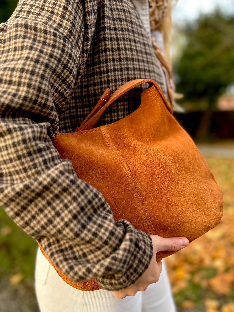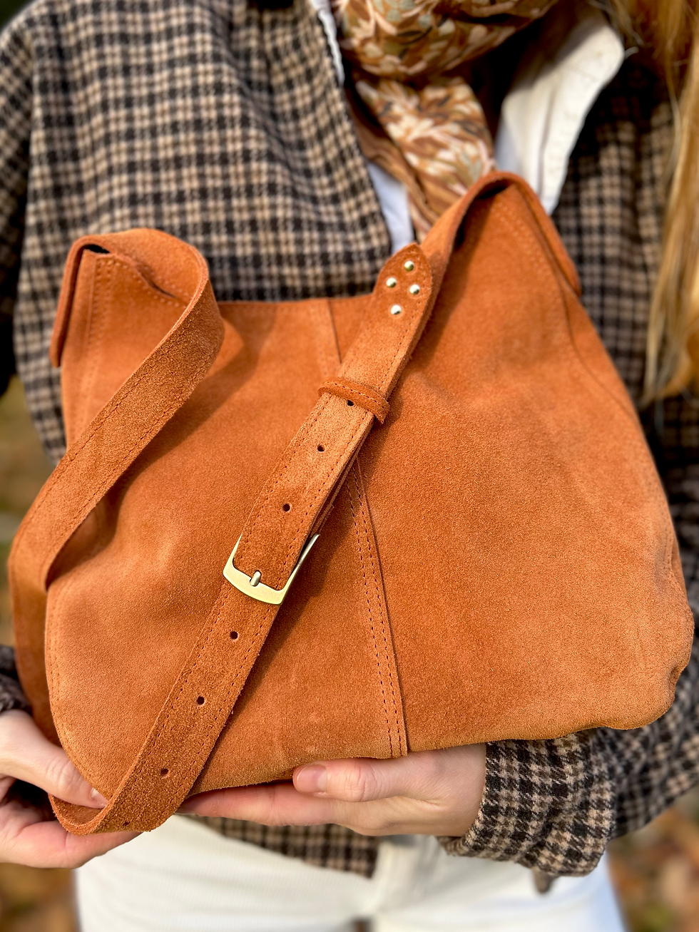- Bandoulière réglable en cuir de vachette au tannage végétal camel